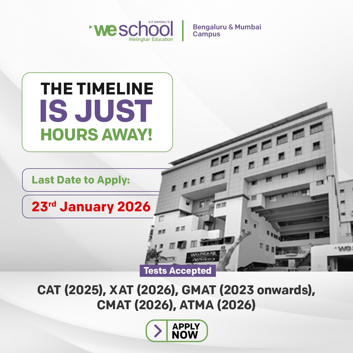 The WeSchool campus is where ideas, innovation and cutting edge global dialogues come alive. Our campuses in Mumbai and Bengaluru, draw students from diverse cultural, personal and professional backgrounds. Equipped with state-of-the-art facilities like WiFi and innovation labs; they enable for a new wave of collaborative learning.