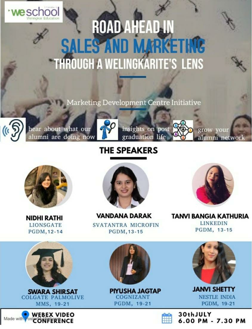 The session ‘Road Ahead in Sales and Marketing – through a Welingkarite’s Lens’ started with a warm welcome by Prof. Indu Mehta. In view of the upcoming placement season of 2020-22, the talk elaborated on various options in sales and marketing as a career.