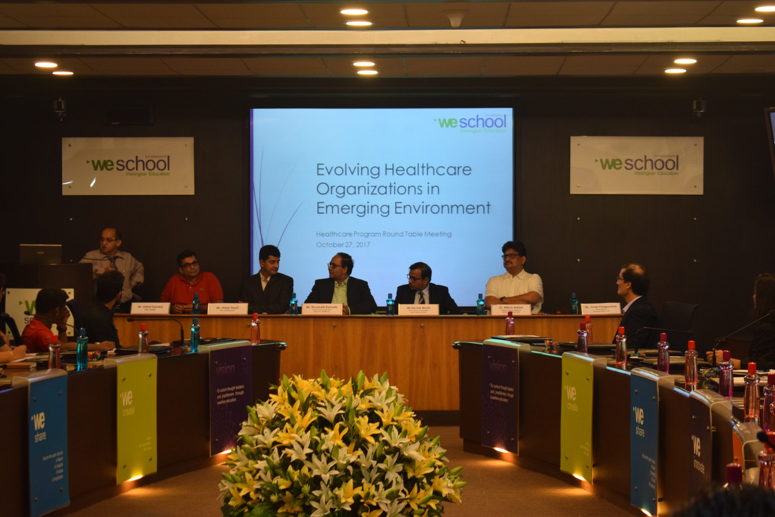 To deliberate on how the healthcare organisations are evolving in such an emerging environment and the nature of skills and competencies needed in future of jobs, a roundtable meeting was organised by PGDM Healthcare program under theme “Evolving Healthcare Organisation in an Emerging Environment”. The meeting was attended by eminent panelists like Mr Saumil Mody, Commercial Operations, Eisai Pharmaceuticals; Mr Vishal Gondal, CEO, GOQii; Mr Vivek Tiwari, CEO, Medikabazaar; Dr Milind Antani, Partner and Head – Healthcare, Nishith Desai Associates and WeSchool Alumnus Mr Koustubh Kanade, Country Head South-Asia, Panasonic Healthcare. The discussion was moderated by Mr Vivek Padgaonkar, Former Director, Project and Policy, OPPI (Organization of Pharmaceutical Producers of India).