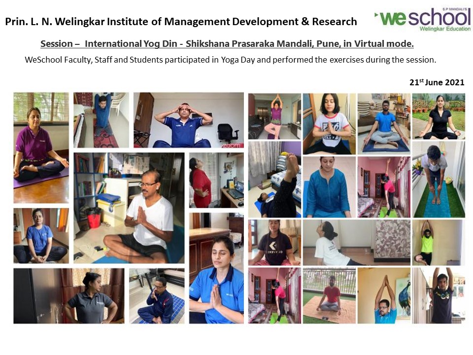 21st June 2021, Mumbai: S.P. Mandali’s Prin. L. N. Welingkar Institute of Management Development and Research (WeSchool) observes the international Yoga Day with its’ students, teaching faculty and staff virtually with an objective to promote the value of health and wellness during these pandemic times.