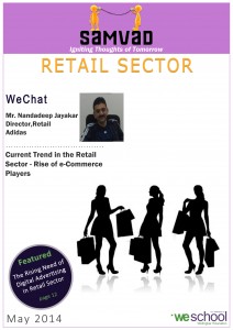 SAMVAD May Issue focuses on the retail sector and various perspectives shared by industry stalwarts and students from various institutions around India. The highlight of the issue is the WeChat section where Mr. NandadeepJayakar, who is a Welingkar Alumnus and currently the Director Retail for Adidas. Mr. Jayakar unfolds his experience with various companies and gives highly credible insights to the retail side of the blue-chip companies that he has worked with. He highlights the major milestones in his career spanning 21 years. He shares his contributions to the turnaround success with Future group and the like. Further to his professional experiences, he shares his views regarding the current scenario of retail and Supply chain in India