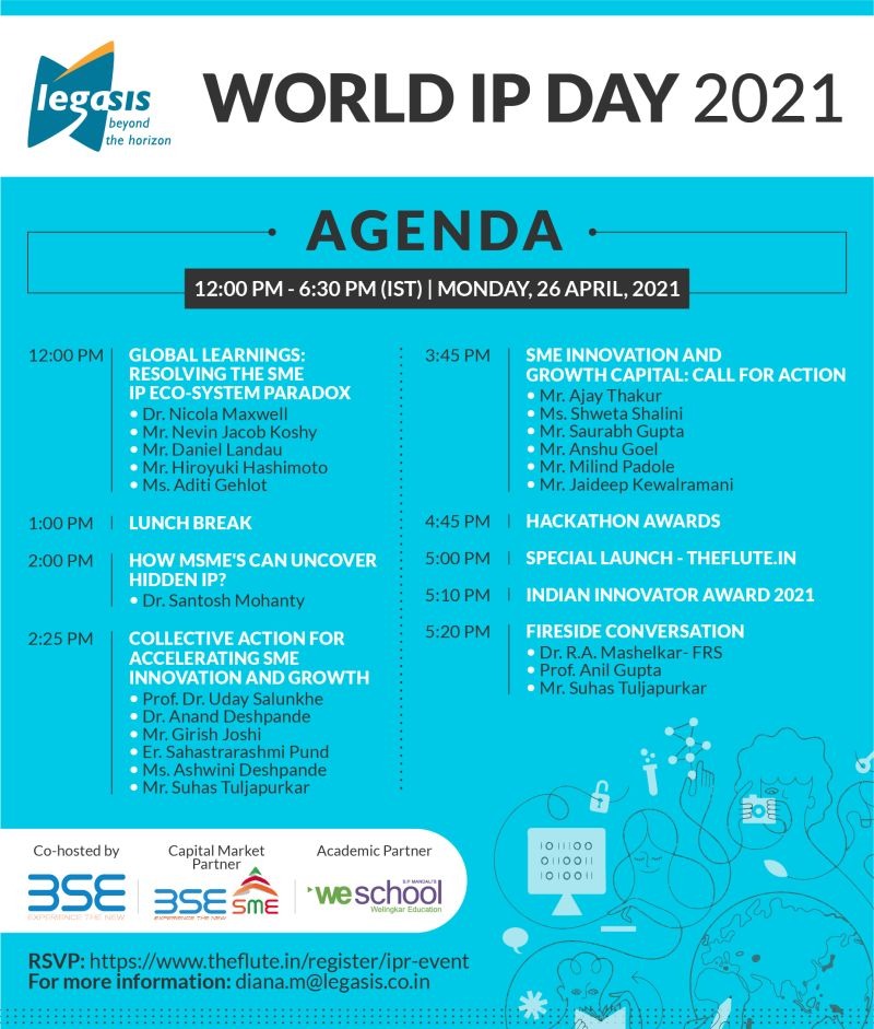 Legasis in partnership with the Bombay Stock Exchange and S.P. Mandali’s Prin. L. N. Welingkar Institute of Management Development and Research (WeSchool) hosted the World Intellectual Property (IP) Day Celebration on Monday, 26th April online.