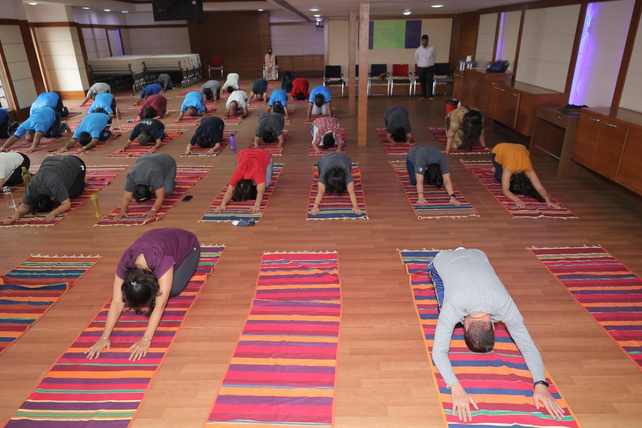Shri Mohan Ranade shared insights about the Vivekananda Kendra and the importance of Yoga. He also spoke about the recognition and acceptance that Yoga has received internationally. Mrs. Dipti Mhaskar demonstrated the various postures of Yoga throughout the session and Mrs. Swati Kulkarni show the participants the 12 steps of Surya Namaskar, which they followed after her. The session was concluded with a few Pranayama exercises.